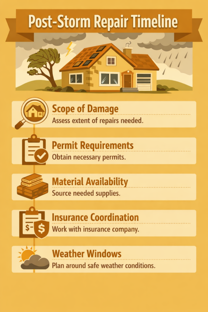The question most homeowners ask immediately after is a practical one: how long will this actually take to fix? The honest answer is that it depends — but it’s not as vague as it sounds. There are specific factors that drive the timeline, and knowing them upfront helps you plan, communicate with your insurance company, and avoid being taken advantage of in a moment of urgency.