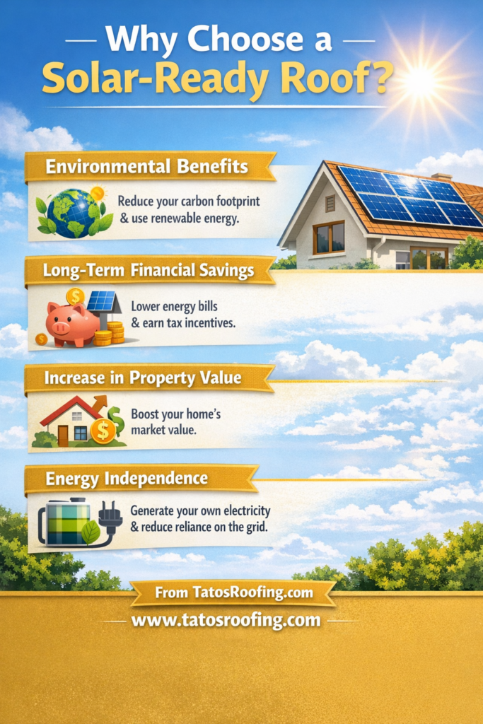 With a solar-ready roof, you’re not just preparing for the future. You’re actively contributing to a greener, more energy-efficient world. Whether you’re ready to install solar panels now or simply want to future-proof your home, Tato’s Roofing is here to help.